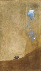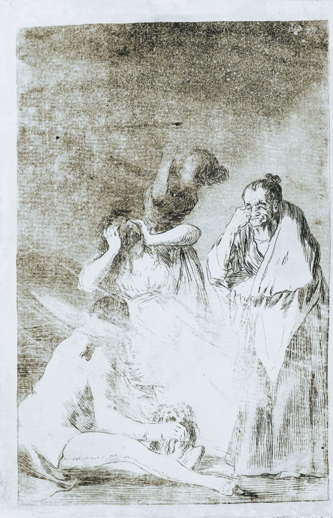 Este perrillo de Goya es un huérfano del halda, ha perdido el calor y el acomodo, ese espacio preferente en el regazo de la mujer, o de la vida; el mundo se hunde a sus pies —o se hunde en él—, queda desprotegido, o fue expulsado, traicionado, abandonado o sustituido, o soltado a un mundo exterior —de ahí el miedo y la incertidumbre—.