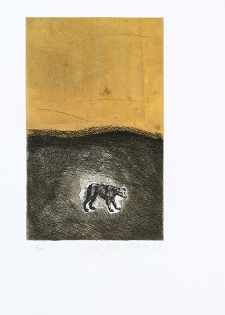 Existe un reciente paralelo, del año 2002, que, bajo el título de Perro, es un grabado en original, realizado en aguafuerte, aguatinta y hoja de oro, del italiano Minno Paladino,