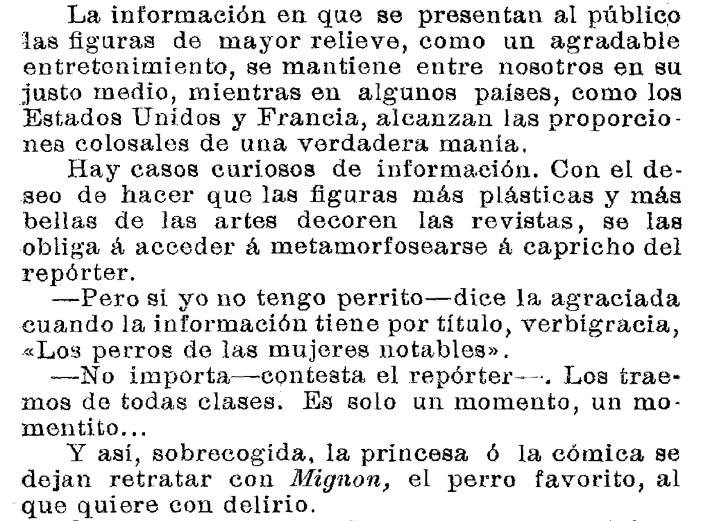 Así titulaba este artículo, o asomo, la escritora española Carmen De Burgos en Al balcón, en una especie de inquietante reunión de anécdotas, y que viene a confirmar los avisos del fotógrafo Pepe Walken en ¿Todas tenían un lulú llamado Pablito? «…He aquí el libro. Son cosas distintas (lejanas entre sí; escogidas al acaso} no sólo entre las últimas del Heraldo, sino de ABC, de Diario Universal y de La Correspondencia de España, en aquellas distintas épocas en que fui redactora de unos y de otros… Acéptelo usted por todo esto, en la confianza y en la sinceridad.» (Carmen De Burgos; Valencia, 1910)