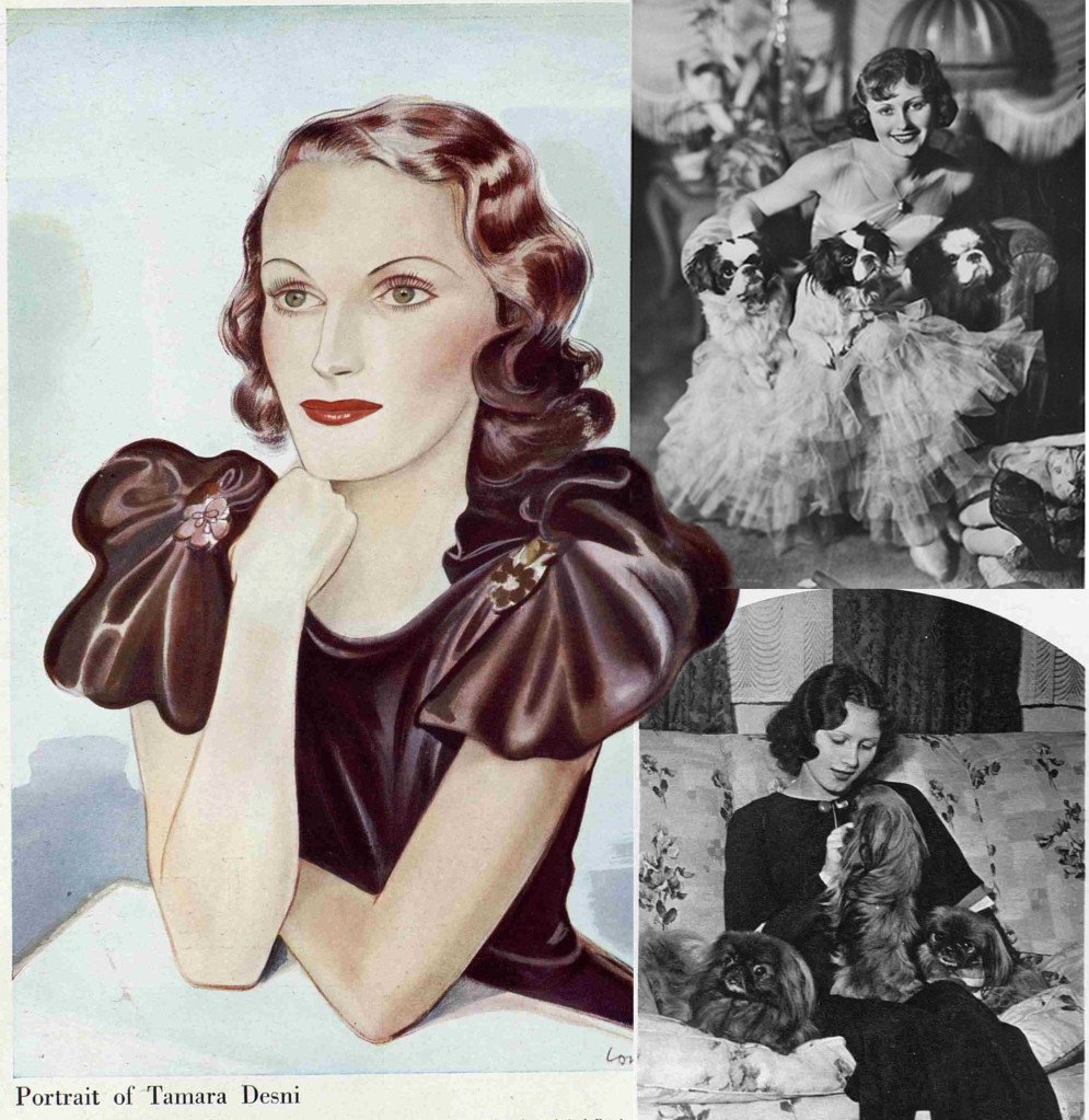 «¿…Quién podría haber dicho que la hija de la actriz Tania Desni, originaria de un pueblo de provincias de la Rusia Central, se convertiría en una estrella del cine británico gracias a la Revolución, y a Bruce Seaton, quien puso fin a los problemas de nacionalidad de Tamara Desni al casarse con ella en 1937?» (The Bystander, 18 de mayo de 1938). En el filme Blue smoke (Ralph Ince, 1936), y con Tamara Desni en el papel de Belle Chinko, y filmado en la campiña inglesa, se decía que el argumento era un romance gitano; casi un rincón más. Actuaba un perro estrella, el mesticillo Scruffy, que también participó en Storm in a teacup y en producciones de la Vulcan Film. Los pequineses de la actriz, y otras triadas caninas, solían ganar todos los certámenes de belleza donde participaban.