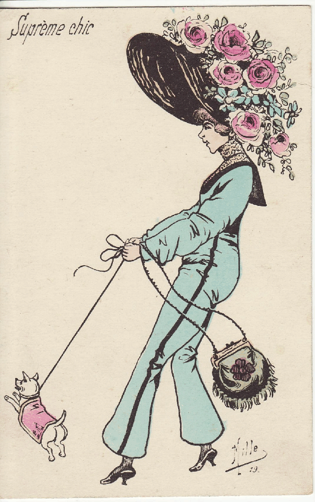 Serie de postales, ilustraciones, caricaturas y apoyos gráficos se corresponden con la firma (casi seudónimo) de Mille F, vinculada al mundo femenino y sufragista entre 1870 a 1914. Casi todo este material fue reunido por Marguerite Durand en su inmenso archivo. Durand fundó el periódico La Fronde (1897-1903, escrito exclusivamente por mujeres como Pauline Kergomaf, Marie-Louise Néron, Andrée Viollis, Termine Harlor…). Quería hacer teatro desde muy niña, soñaba con entrar en la Comédie Française, algo que consiguió hacia 1881. Gracias a su madre, la señora Durand de Volferre, conoció a todos los grandes personajes de la época. Dejó la dramaturgia para casarse con el político Georges Laguerre (uno de los líderes del boulangisme). Además de formalizar la primera cooperativa de mujeres, también creó, hacia 1900, el cementerio de perros cerca de Asnières (París).
