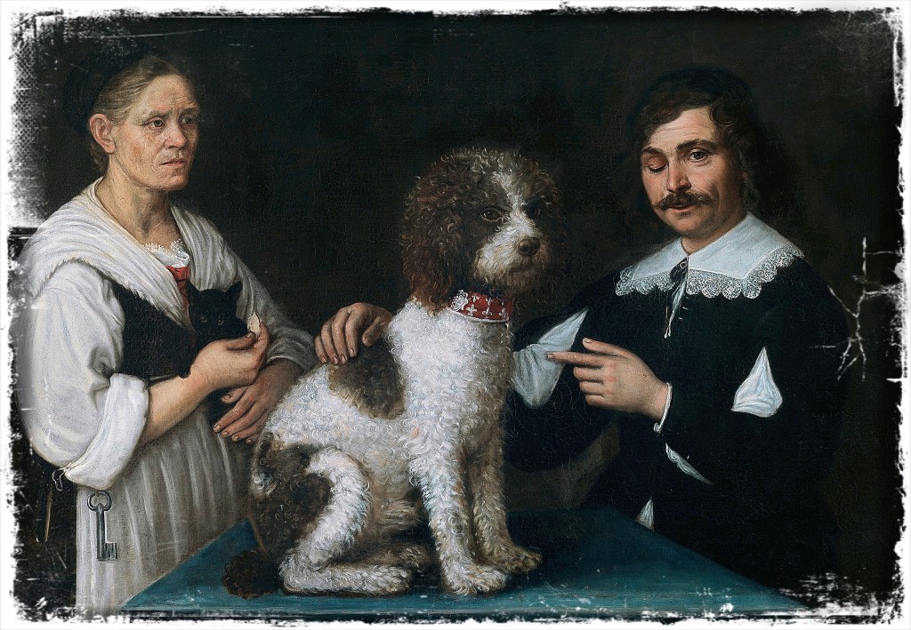 «Teniendo en cuenta esos elementos, hay una pintura interesante de la colección del Grupo Fondazione Sorgente que representa a uno de los principales pintores del siglo XVII, Guercino, posando junto a su madre y un magnífico perro de pelo espeso y rizado. Es un Lagotto de Romaña, una raza de perro de las tierras entre la ciudad de Rávena y el delta del río Po. Un área bastante familiar para Guercino que vivía no muy lejos, en Cento.