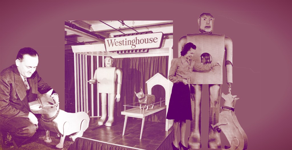 El ingeniero John Angel diseñó este perro robótico para la Westinghouse Electric Corporation entre 1938 a 1939. Solo recibía órdenes, instrucciones y ladraba, y acompaña a Elektro, robot que mostraba veintiséis trucos diferentes, incluyendo pronunciar un discurso o fumar cigarrillos. El público pudo deleitarse con esta muestra robótica en 1940, en la Feria Mundial de Nueva York. Ambos, el perro Sparko y Elektro, funcionaban de la siguiente manera: «Su columna vertebral y su sistema nervioso contienen cientos de kilómetros de alambre. Elektro responde a las palabras pronunciadas en un micrófono. Cada palabra genera vibraciones, que se convierten en impulsos eléctricos. Estos impulsos operan los relés en el cerebro de Elektro que controlan sus once motores. Efectivamente, hablar con Elektro es como marcar un teléfono utilizando impulsos de luz en lugar de números para hacer que los relés actúen. Una serie de palabras, debidamente espaciadas, seleccionan el movimiento que Elektro debe realizar, de la misma forma que funciona su perro Sparko». (Más información de perros robóticos, eléctricos o informatizados).