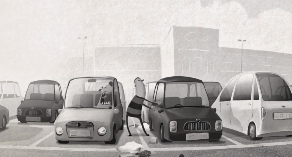 Los artistas de animación londinense de Bird Box Studio, realizaron Carpark en el año 2013, con un argumento muy similar al que podría verse en un corto animado de la época silente. Con una delicada y afinada calidad, narran lo siguiente: un hombre toma la decisión de burlarse de un pequeño perro que ladra dentro de un coche aparcado, pero todo cambiará cuando el perro descubra cómo bajar la ventanilla. Al mismo estudio pertenece Walkies, y también la humorística y fascinante Dinner,