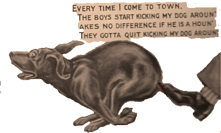 (Esta canción de 1912, Ya Gotta Quit Kickin My Dog Aroun, con letra de Webb M. Oungst y música de Cy Perkins, da pie a un muy copioso conjunto de variaciones. Jim fue un perrito viejo que nunca dejó de ser un cachorro. Le arrojaron un montón de piedras, ataron latas a su cola, lo bañaron de patadas, hicieron todo lo más insufrible que alguien pueda imaginar, pero, aún así, sobrevivió.)