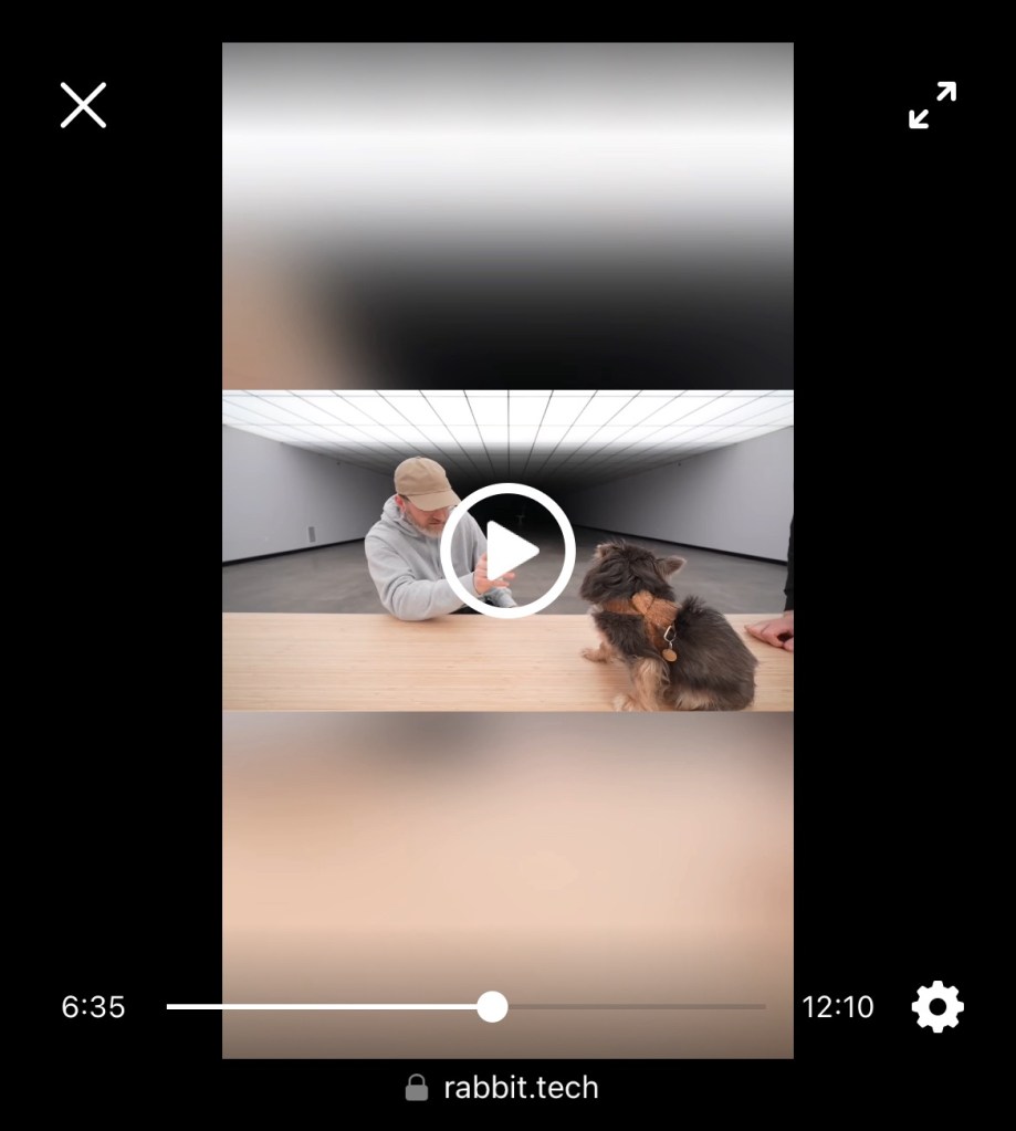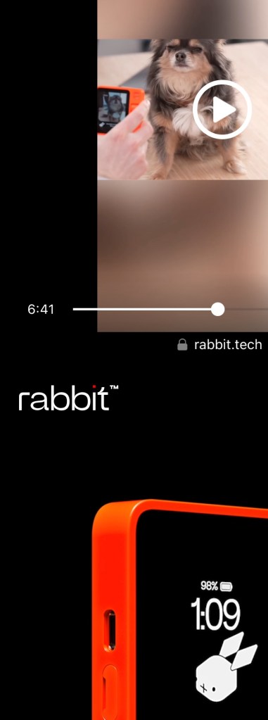 Un falderillo no muy conforme, embalajes kraft, plásticos, batería de a saber el qué, rojos llamativos y muy vibrantes, más una música envolvente e indefinible para realizar el lanzamiento de un rabbit (conejo ya muy visto en Playboy, por cierto, y ahora en estética manga), junto a un diseño también muy desarrollado por Apple en tiempos pasados, aunque aquí con el aspecto de un muy antiguo despertador de viaje, que va vinculado a la promoción de un «personalized operating system through a natural language interface…» Lamentable secuenciación de pasados junto a una desmedida ambición de futuro.