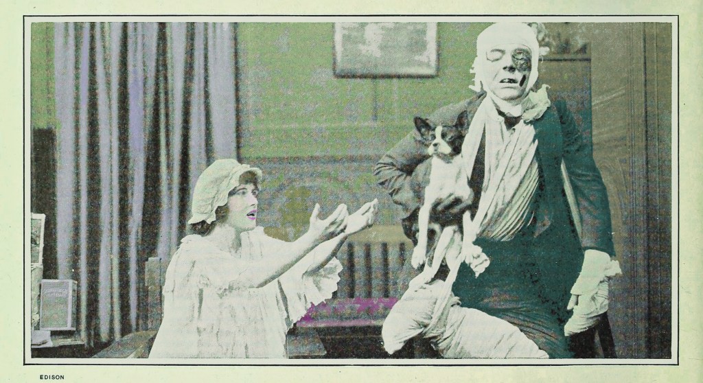 Tan apaleado como un perro, tan roto el corazón como sus huesos, todo por unos celos infundados a partir de un falderillo, es el argumento de El amor de su esposa, filme con Raymond McKee, como el Sr. Whine, y su esposa (Jean Dumar), con un inofensivo cachorro de Boston terrier que coloca a cada quién en un donde, junto a un conciliador después. De maridos celosos y falderillos está llena la cinematografía. Es curioso el asunto del sospechoso mechón de cabello que encuentra el marido en L’obsesion d’un mari jaloux (Pathé, 1909), y la constancia del guión prevenido para la productora, con el enredo a visualizar: