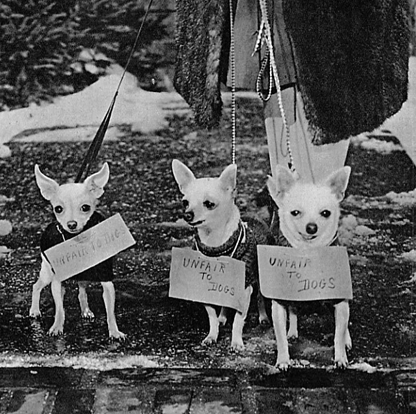 Unfair to dogs. También fotografía de Suschitzky; chihuahuas en 1945.