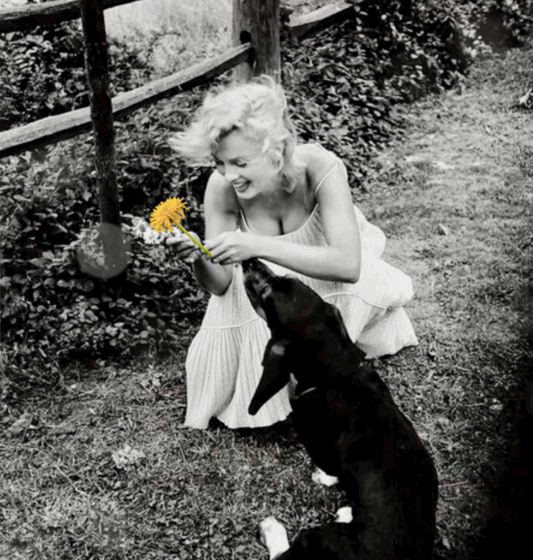 Con Hugo, un Basset hound, en la década de los años cincuenta