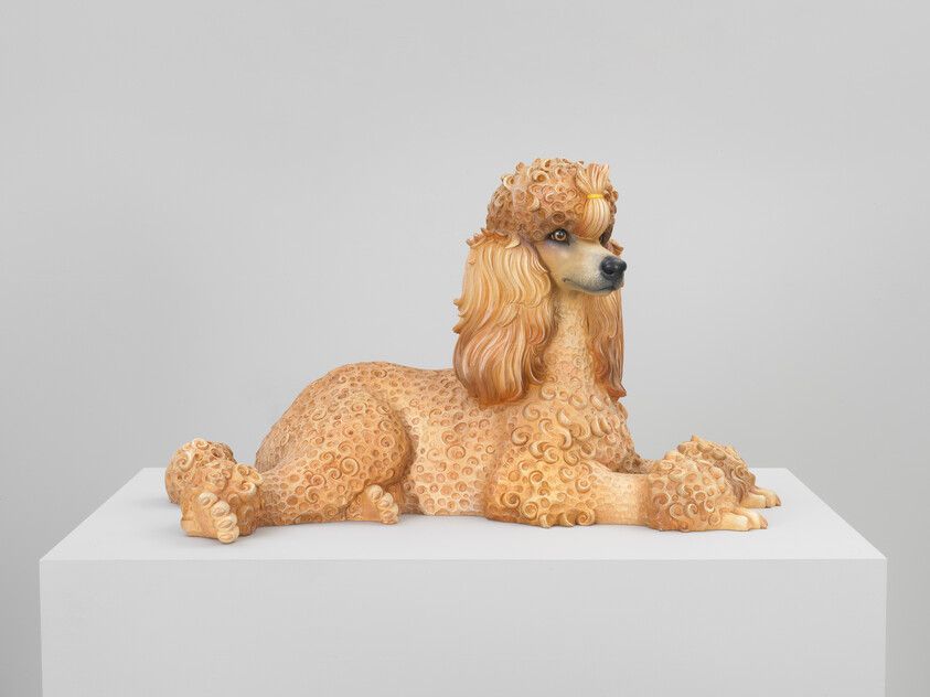 La escultura Poodle (3/3) de Jeff Koons, realizada en madera policromada por artesanos talladores de Alemania y del norte de Italia, fue subastada en 1991 por 2,9 millones de dólares. Se inspiraba, lejanamente, en las secuencias o armoniosidad cómplice de Audrey Hepburn con dos caniches en el filme Sabrina (1954). La escultura forma parte de su controvertida serie Banality, inserta en Made in Heaven, realizada entre 1989 y 1991. Es dificil concretar, aunque sí advertir, que la obra contiene el ojo de Koons, pero ningún otro pulso sugiere ser propio, sino más bien apropiado, cosa habitual entre el ser humano y el universo animal.