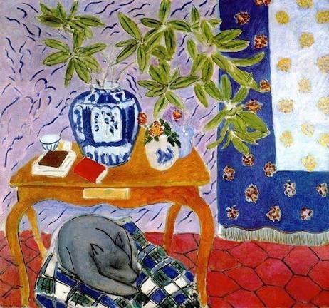 Campos Elíseos, París) bajo el título Matisse 1941-1954, con 300 pinturas que pertenecen al final de su etapa pictórica y vital. Su interior más accesible, su caja fuerte de perros con sueños desconocidos, palomas sin dueño, gatos y peceras en total desacuerdo.