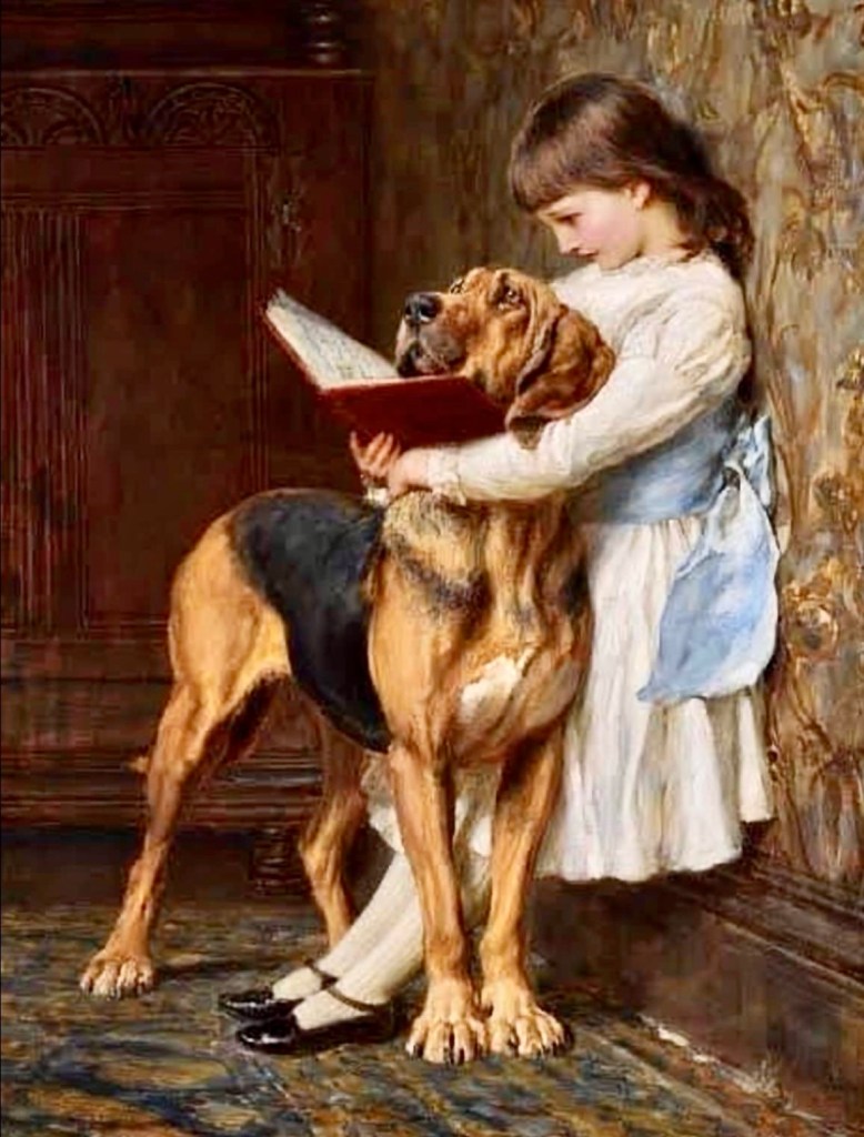 Compulsory Education (1887), lienzo del británico Briton Rivière, descendiente de hugonotes.
