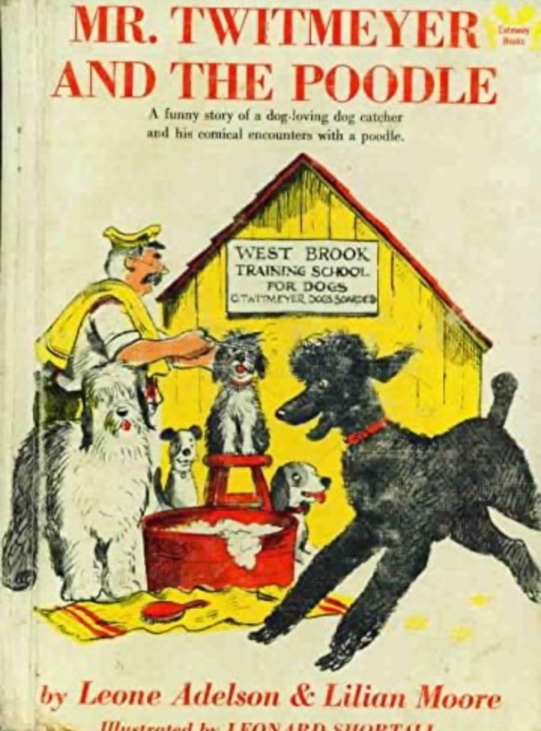 Adelson, Leone and Lilian Moore, Mr. Twitmeyer and the Poodle (NY: Random House, 1961); drawings by Leonard Shortall. 84-page children’s chapter book; pet store setting.