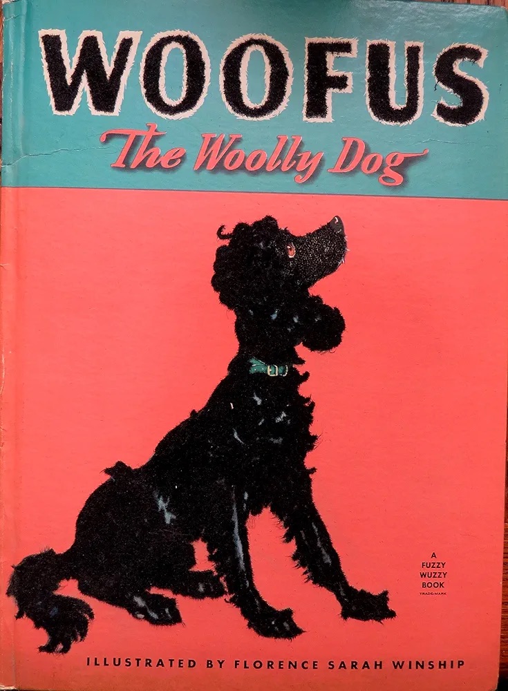 Curry, Jane, Woofus The Woolly Dog (A Fuzzy Wuzzy Book. Racine, WI: Whitman Publishing Co., 1944). Woofus, the woolly dog, romps through the pages in the appealing pictures by Florence Sarah Winship. The smallest children will delight in following the adventures of this playful puppy as he grows into a big woolly dog, for they can feel Woofus as well as see and read about him in this Fuzzy Wuzzy story book.