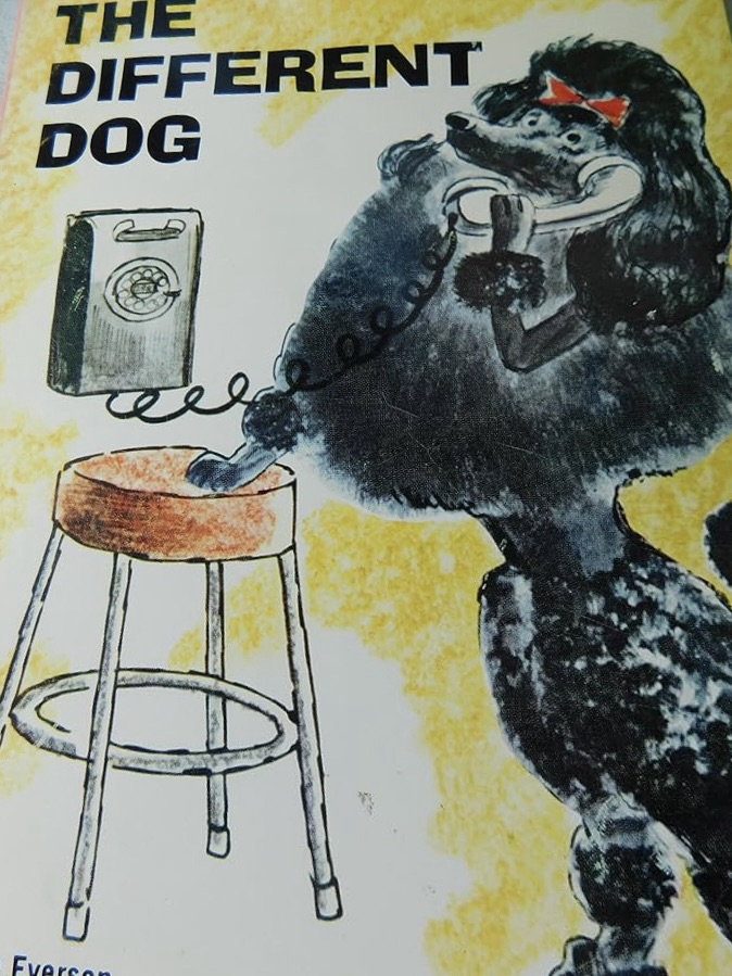 Everson, Dale M., The Different Dog, illus. by Paul Galdone (NY: Morrow, 1960). 32 pp. «This is a children’s book, our hero is a black Standard Poodle in an English saddle clip who really does talk and lives a very misunderstood life until he takes up with an ageing song-and-dance man. They become stars and live happily ever after–it’s billed as a ventriloquist act, only the reader and the dog’s new person know better.» (MH, 10 Aug. ’97.)