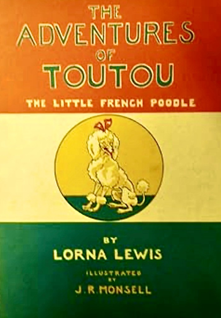 Lewis, Lorna, The Adventures of TouTou the Little French Poodle, illustrated by J.R. Monsell (London: Constable & Co., 1934). 44 pp. TouTou is a Francophone Poodle who is fluent in English and the most likely underlying purpose is to enable small Anglophones to utter a few simple phrases in French.