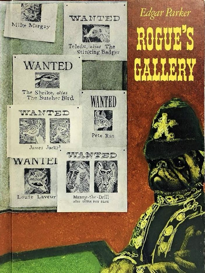 Parker, Edgar, Rogue’s Gallery (NY: Pantheon Books, 1969), 63 pp. Illustrated b&w. Children’s mystery story; all the people are animals: rascally Poodle, etc.
