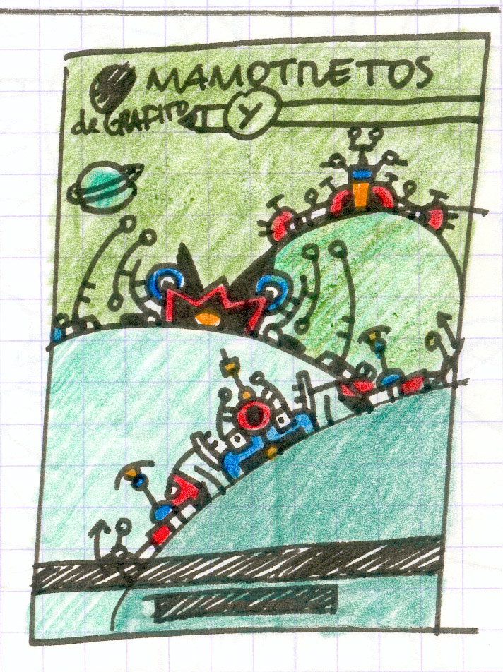 Grapada, folio doblado, 10 páginas por ambas caras. Aquí un extracto, junto a un cd que contiene 1352 dibujos inéditos con apuntes, bocetos y «Microbios». A pincel, plumilla, rotulador, lápiz grafito, estilográfica, lápiz color, bolígrafo… Según Micharmut, expresado en la misma carta, «…con lo que tenía más a mano… Es como rescatar zonas oscuras que no me dieron la posibilidad de editar». Abarcan los primeros años noventa, escaneados de sus originales, sin la intertextualidad, pues no tenía tiempo.